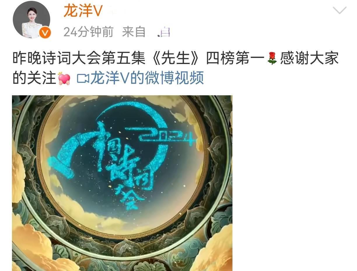 《2024中国诗词大会》第5场,微博热度四榜第一,网友风评也好转